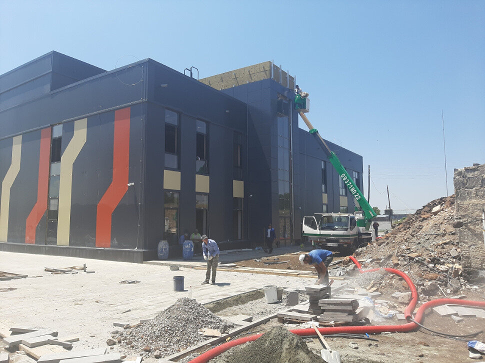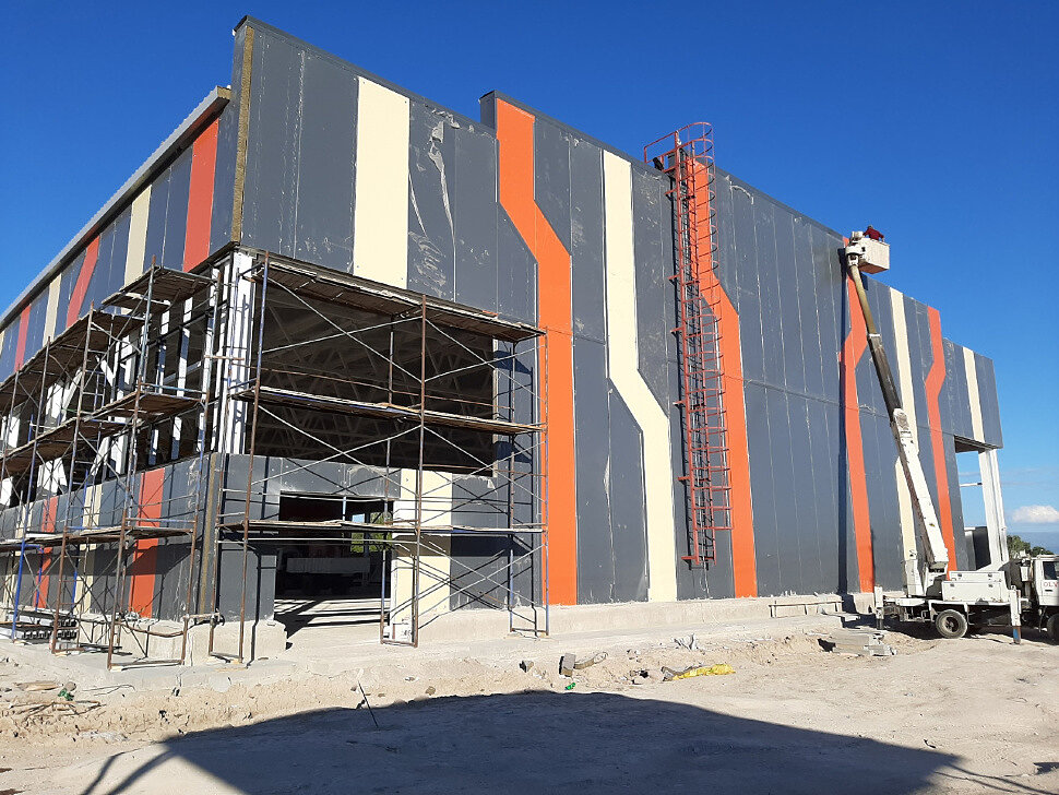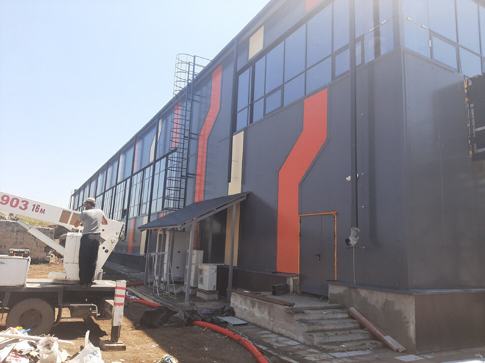 И если при использовании сэндвич-панелей в зданиях, возводимых в обычных условиях, особых проблем в части эксплуатационной надежности как самих конструкций, так и их креплений к стальным и железобетонным элементам зданий, не возникает, то при применении сэндвич-панелей в сейсмоопасных регионах возникает ряд вопросов, от решения которых зависит безопасность сооружений при землетрясениях. При возведении данного объекта были учтены все сейсмические и погодные условия региона.